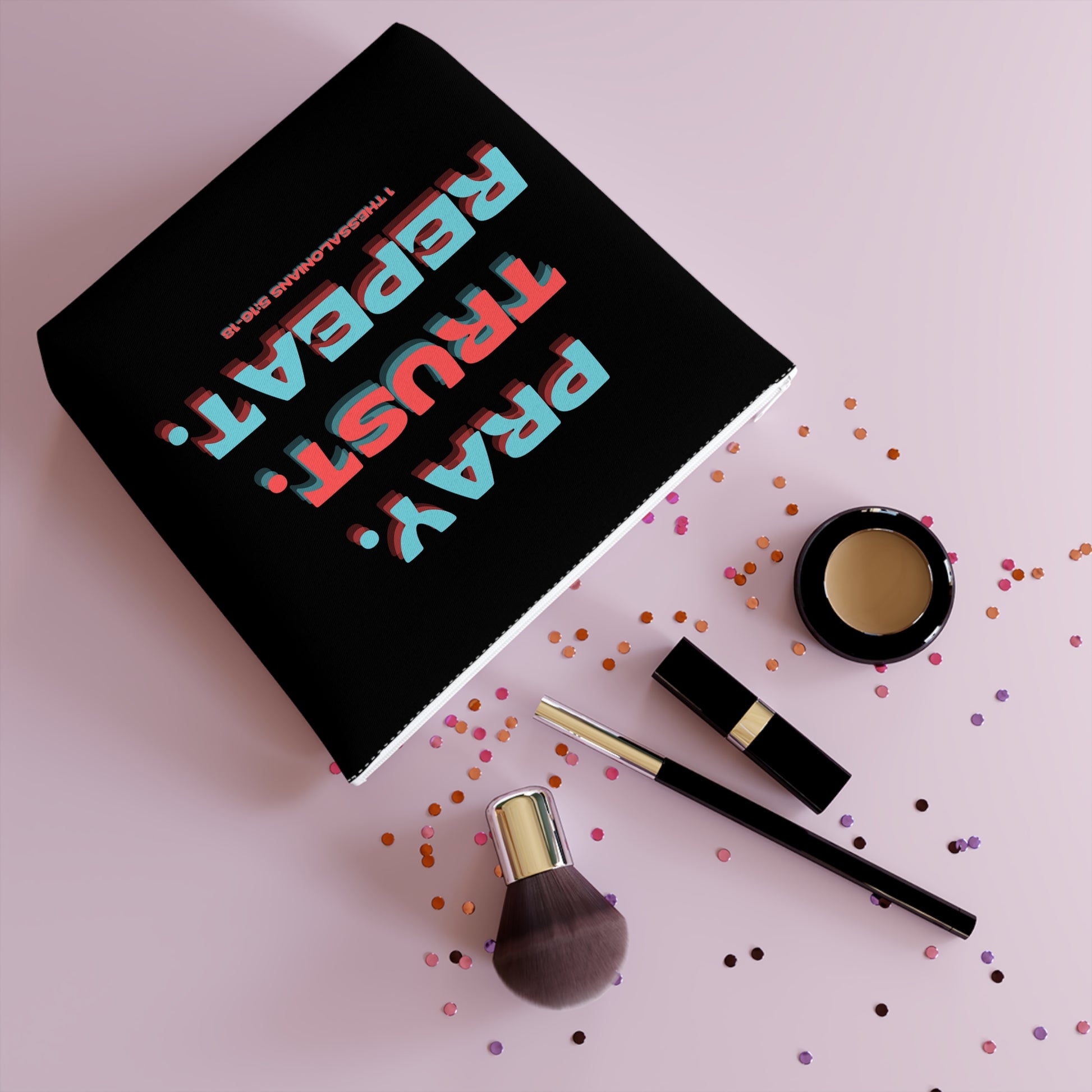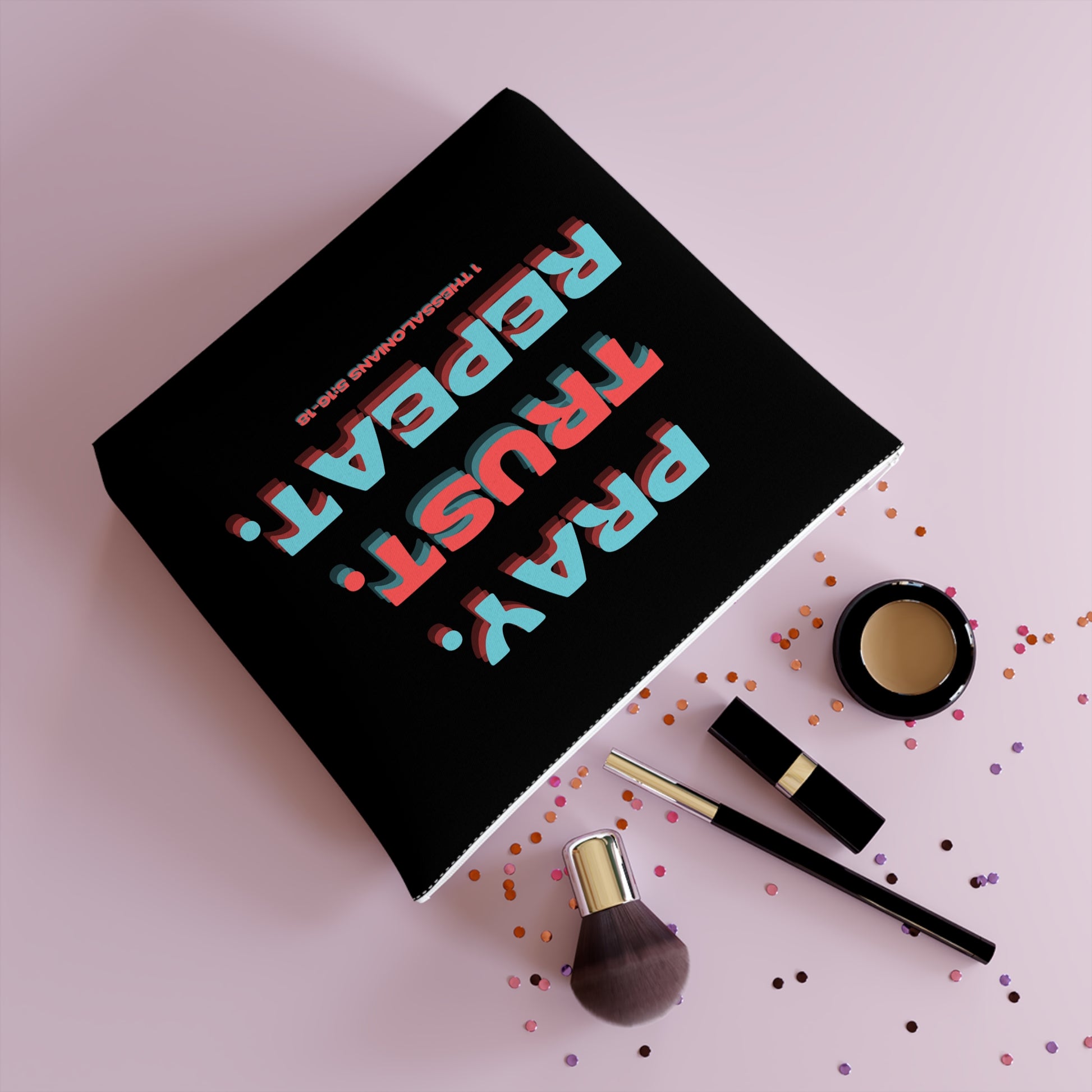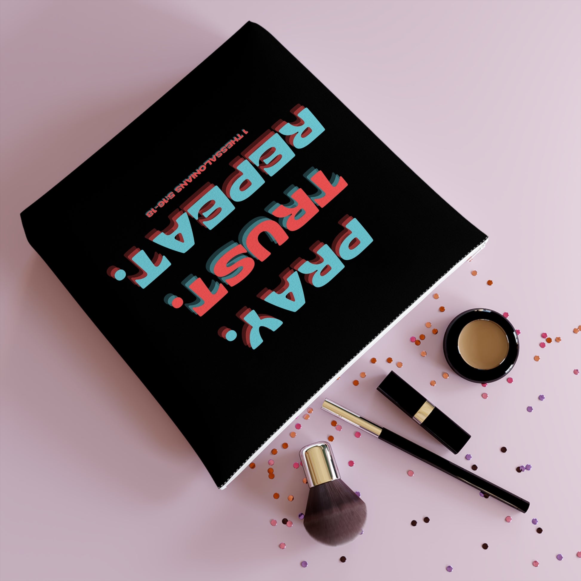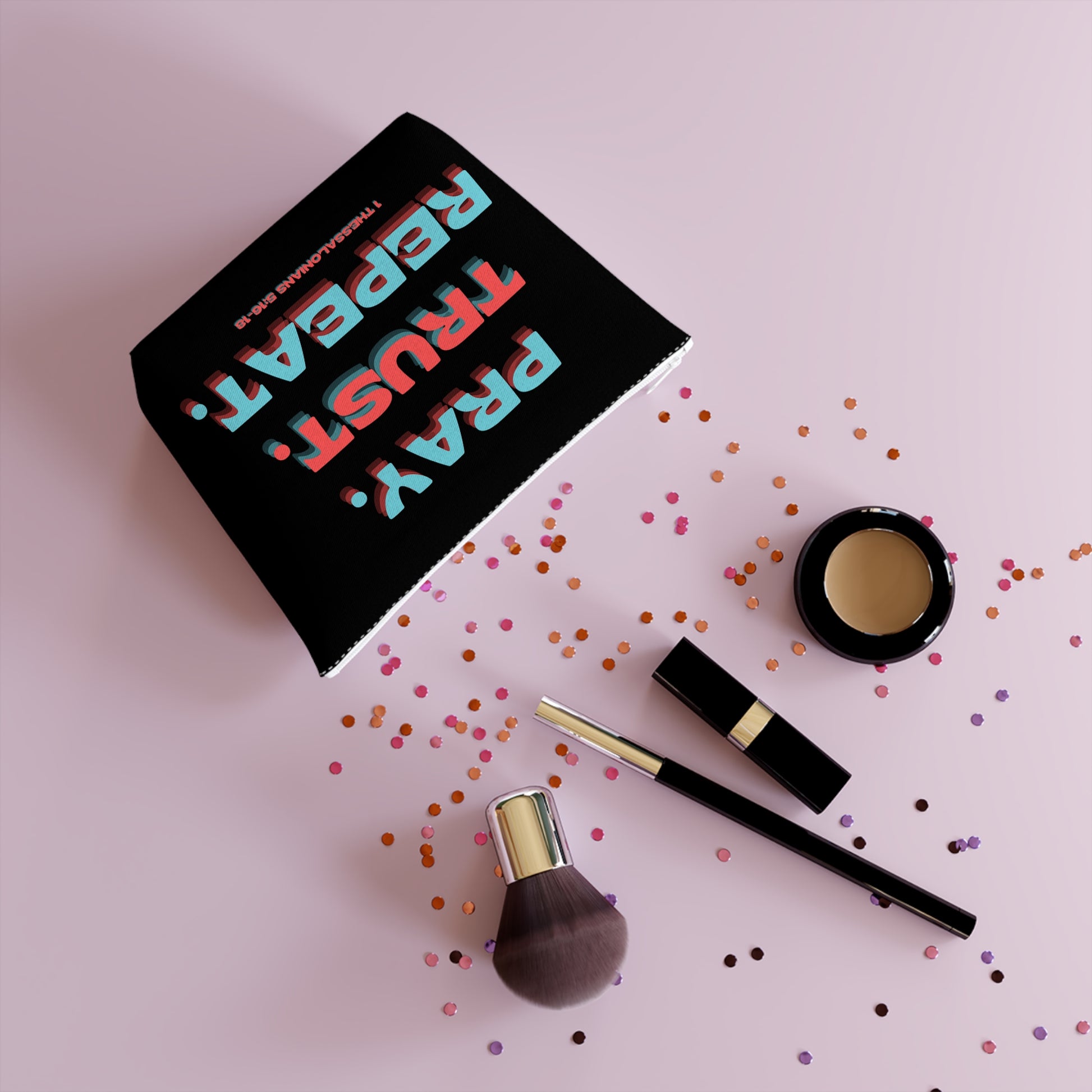 This Cotton Cosmetic Bag features the Bible verse 1 Thessalonians 5:16-18, giving a sense of calm and positivity. Perfect for storing your cosmetics or other small items, this lightweight and durable bag comes in multiple sizes to suit your needs. Ideal for adults and relevant for religious holidays and occasions.